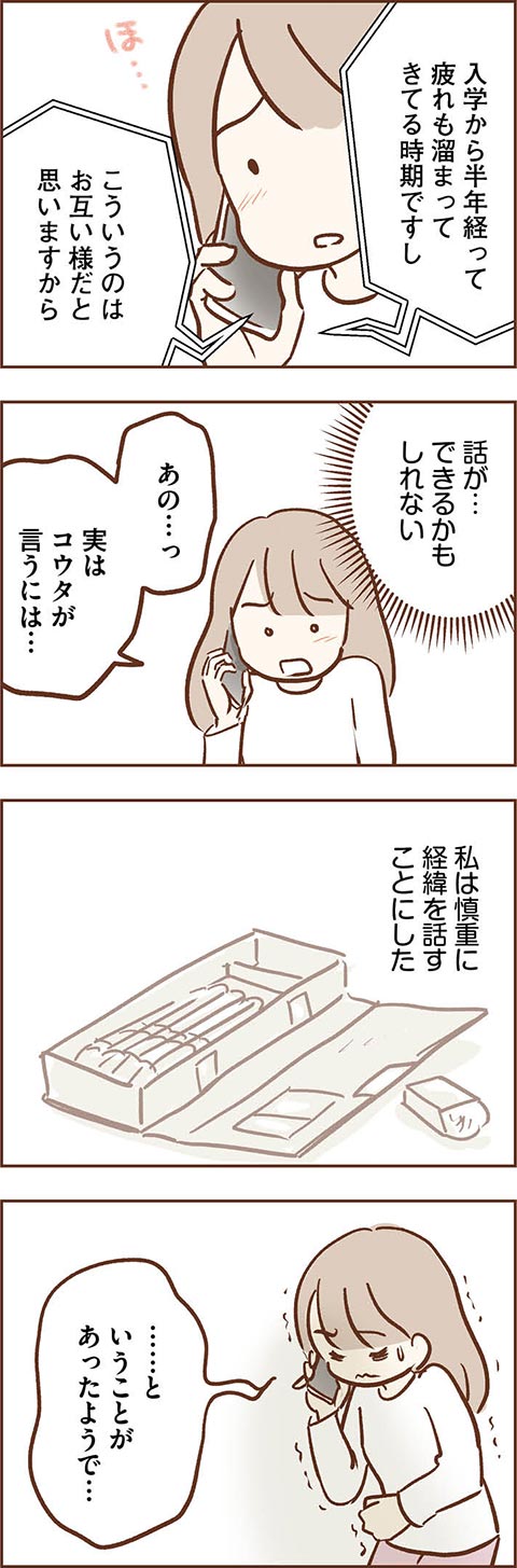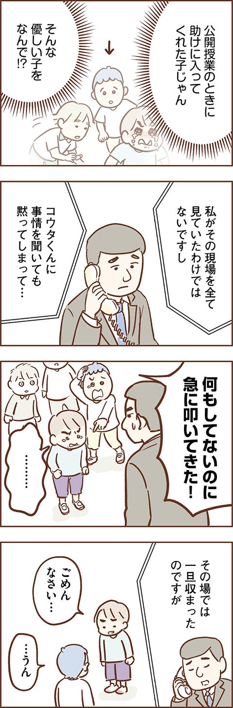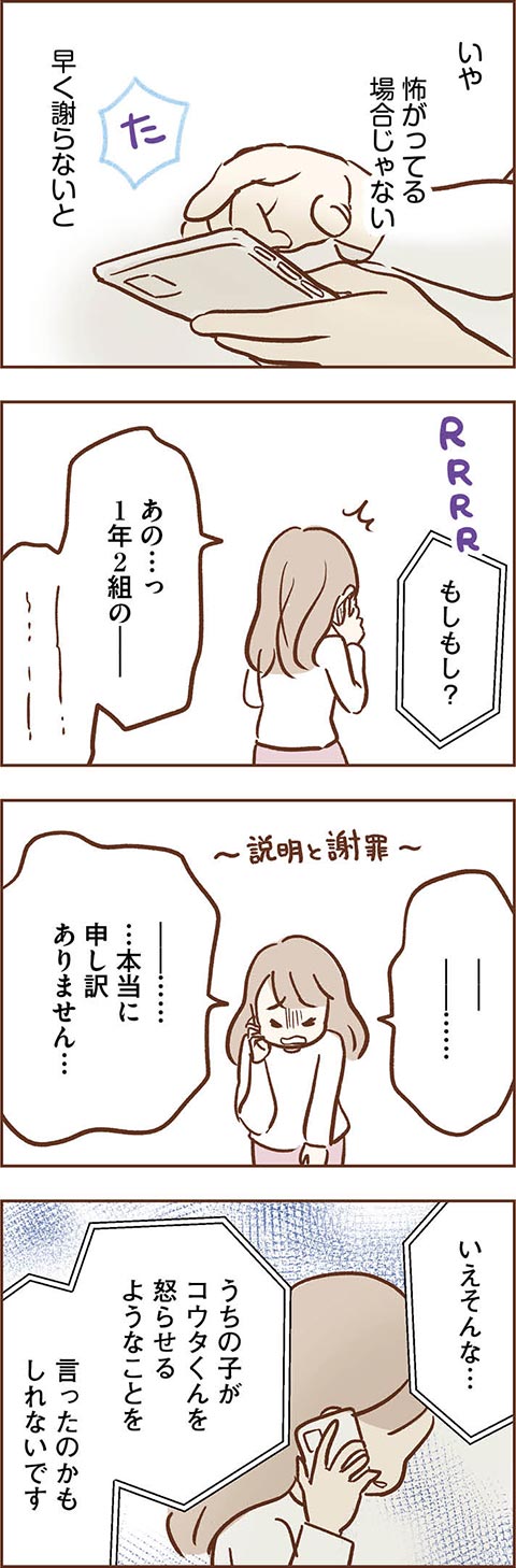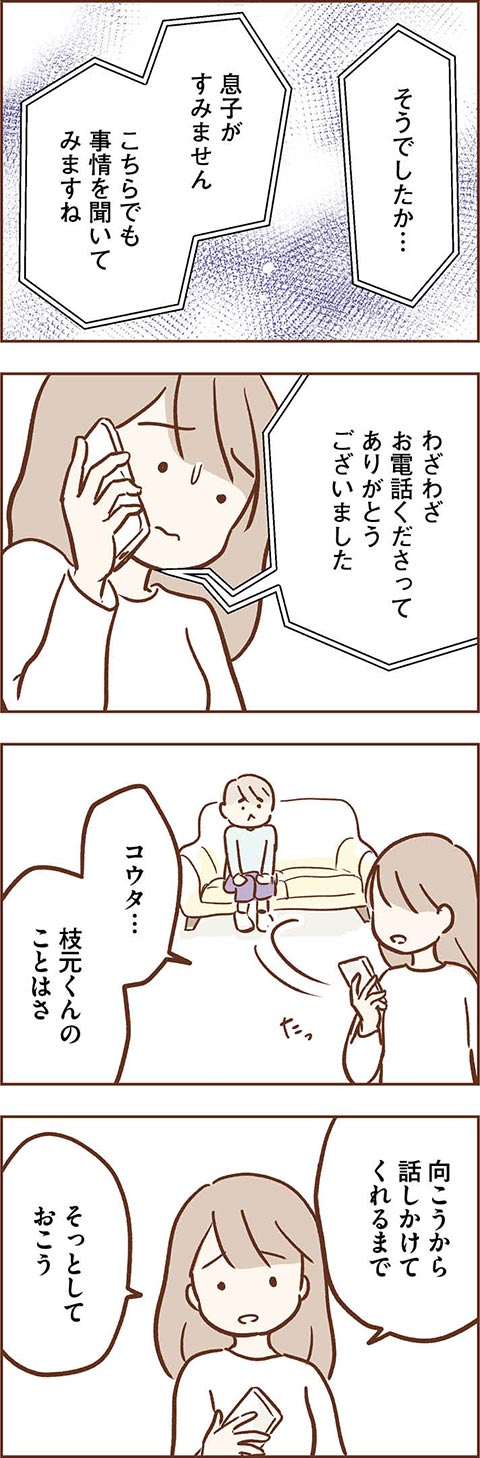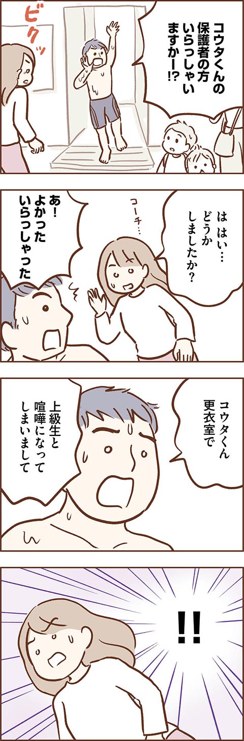 お友達をケガさせてしまったコウタ。母カンナはお詫びの電話に、コウタへの言い聞かせに奔走します。しかし、そんなカンナの努力もむなしく、学校でも水泳教室でも新たなトラブルが続出しているようで……。