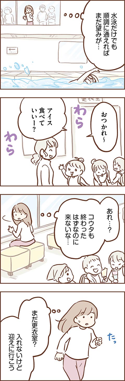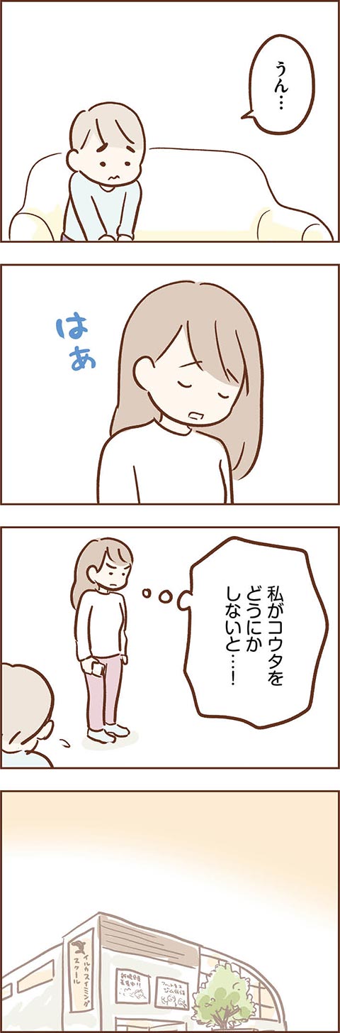 頼みの綱だった水泳教室でも、トラブルを起こしてしまったコウタ。止まらないトラブルにカンナの気持ちも限界寸前のようです。カンナはこの難局を乗り越えていけるのでしょうか。救いの手が差し伸べられないものかと祈ってしまいます……。