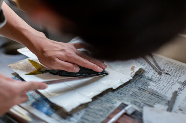 マイ包丁を作っている間、息子も私と同じく息を切らしているだろうと思っていましたが、最後まで弱音を吐かずに黙々とがんばって作っている姿を見て、とても感動し、成長を感じました。