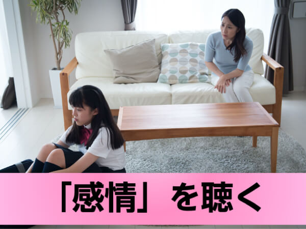 何が起こっているのか話してくれず、どうフォローしてよいのかわからないという場合は、さりげなく今の「感情」を聴いてみるのもおすすめです。「なんだか浮かない表情だけれど、今どういう気持ち?」などと声をかけてみて、話したくなったら聴く準備はあるよ、ということを伝えてあげましょう。