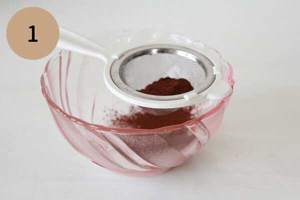1. 純ココアパウダーにダマがある場合は、茶こしでふるっておく。