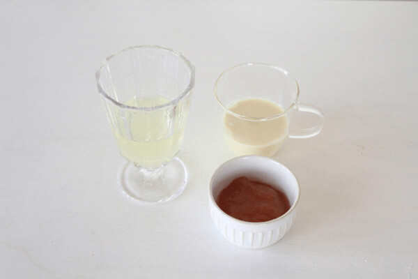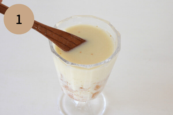 1. ホエイ・ジャム・牛乳または豆乳をグラスに入れる
