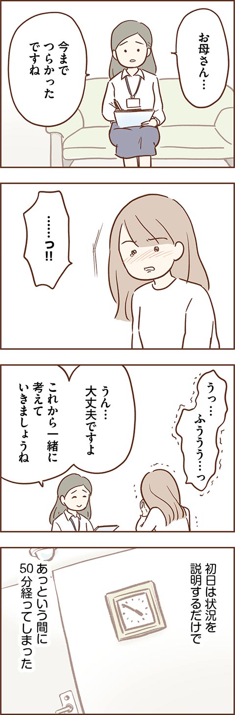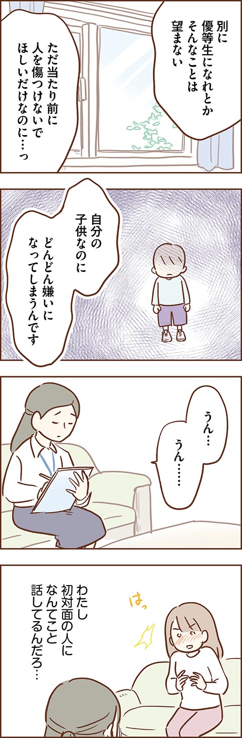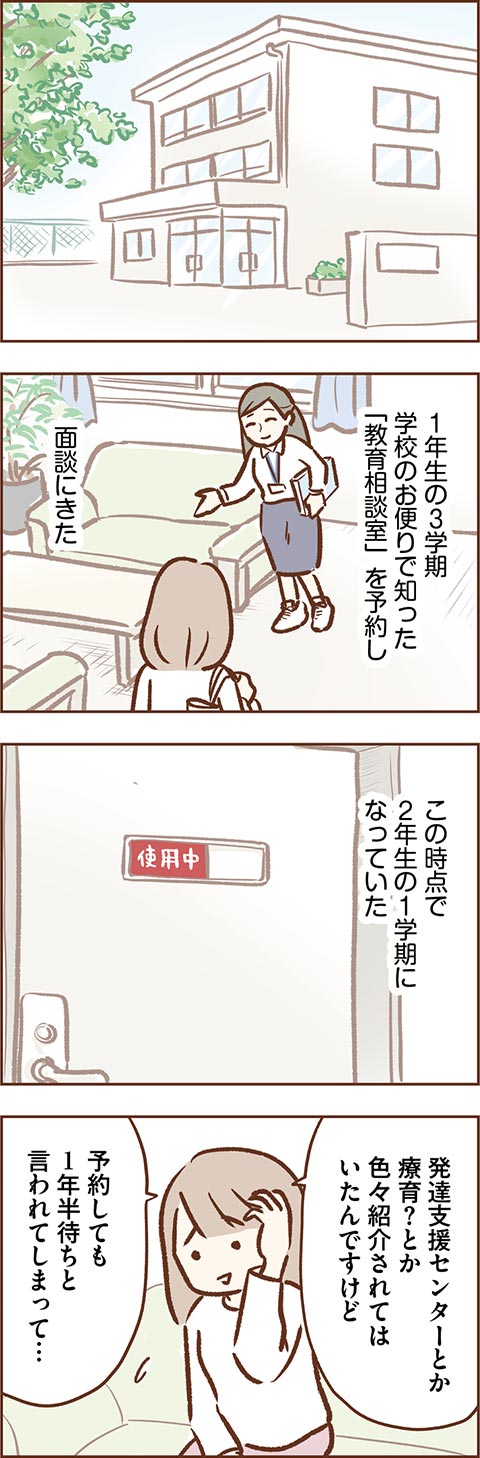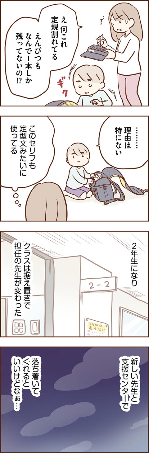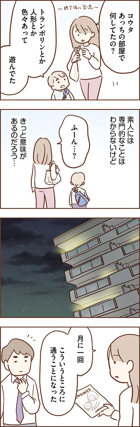 支援センターのサポートを受け始めたものの、夫からはサポートどころかなかなか理解すら得られないカンナ。支援センターという心強いサポーターを得て、コウタのトラブルが改善していくことを願わずにはいられません。