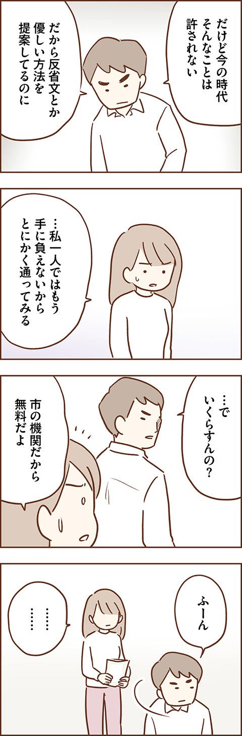 カンナの悪戦苦闘もむなしく、トラブルがどんどん悪化していくコウタ。カンナはワラにもすがる思いで市の「支援センター」の扉をたたきます。しかし、夫とは意見がすれ違ってばかりのようで……。