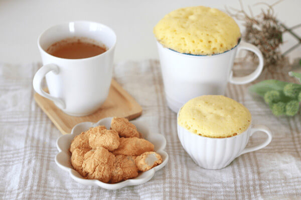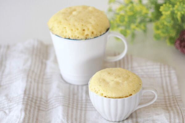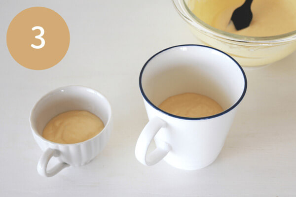 3. マグカップの真ん中あたりまで生地を入れ、600Wの電子レンジで加熱して完成です。