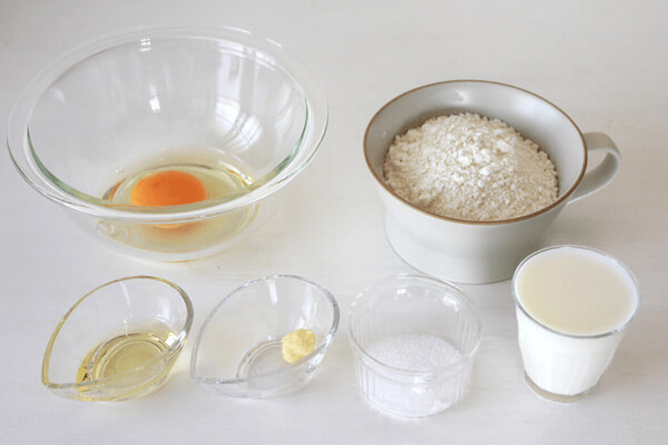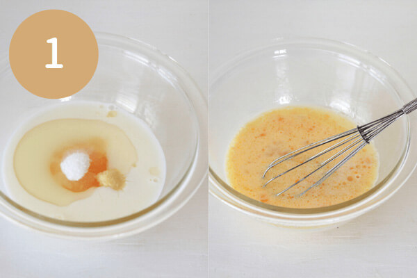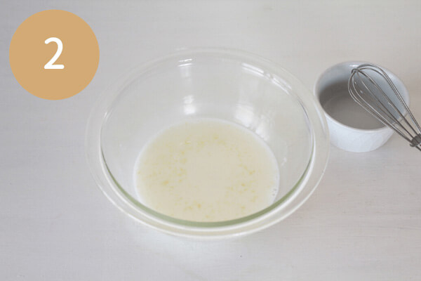 1. ボウルに卵・砂糖・チューブ生姜・サラダ油・牛乳を入れ、30秒ほど泡だて器で混ぜる。