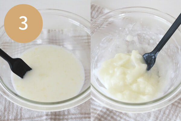 2. 牛乳・チューブ生姜を入れ、なめらかになるまでよく混ぜる。