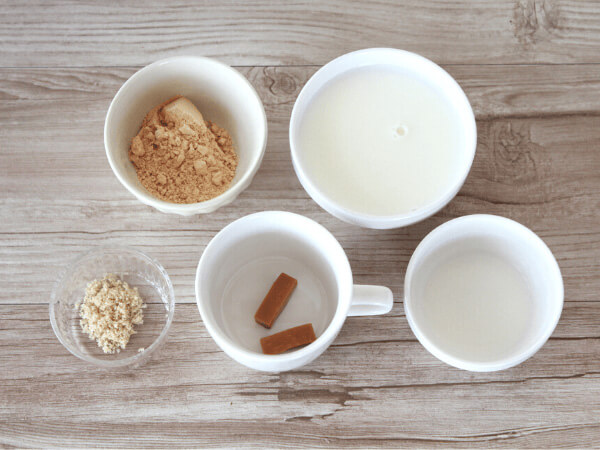 最初にご紹介するのは、きな粉をたっぷり使用したキャラメルラテレシピ。