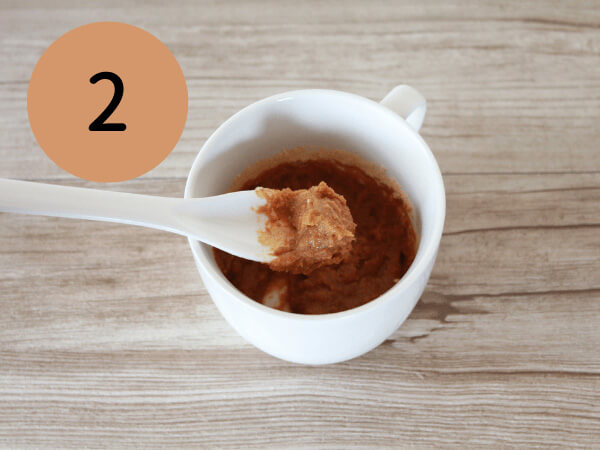 3. 600Wの電子レンジで1分40秒加熱する。よく混ぜたら完成です。