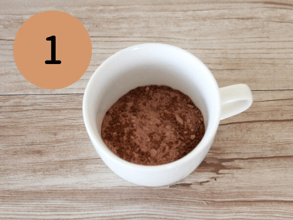1. マグカップにミルクココアとインスタントコーヒーを入れる。