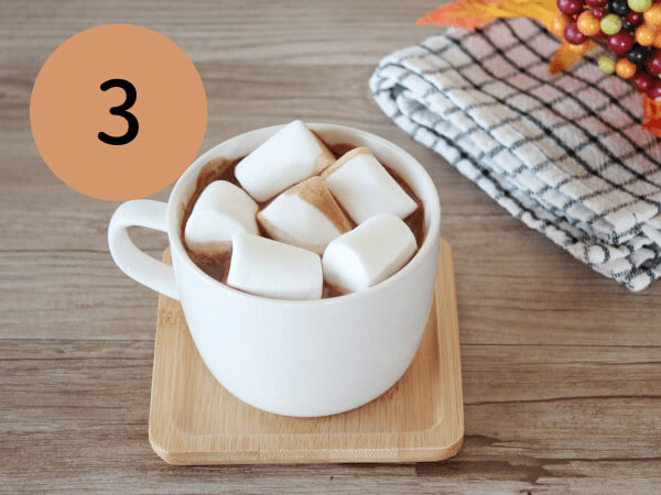 ココアの熱でマシュマロをゆっくり溶かしながら楽しんでください。