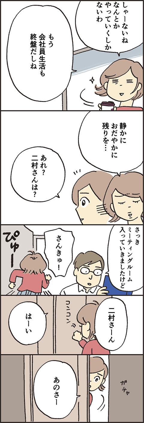 かつてトキめいていた同期と更年期話で心を通わせた圭子。気持ちを入れ替えて仕事、仕事……と思っていたところ、成長を見せていた後輩・二村によるとんでもないミスが発覚したようで……。