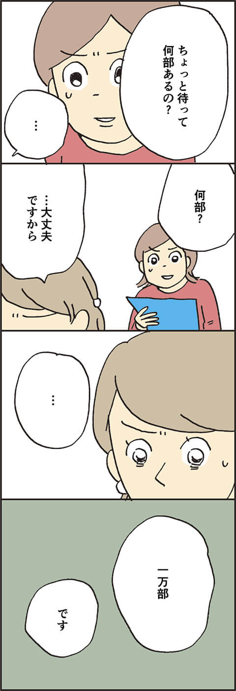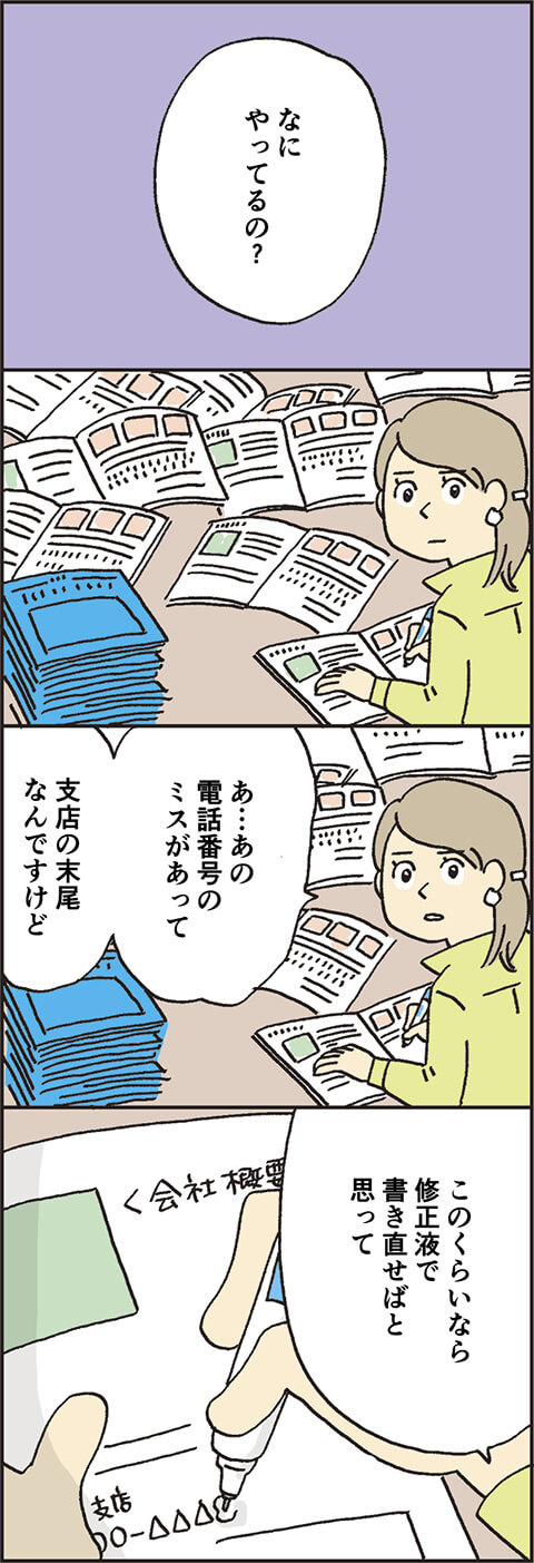 1万部の印刷物のミスに、動悸・息切れ・汗が止まらない圭子。ミス対応は? 上への報告は? 二村のフォローは……? タスクがあふれかえる修羅場を圭子はどう乗り越えていくのか。逃げたいと思いつつ、立ち向かっていくであろう圭子の次なる行動が気になります!
