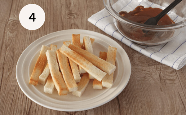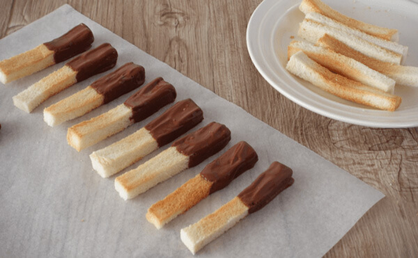 最初にご紹介するレシピは、市販の食パンを使用したサクサク食感のチョコラスクです。