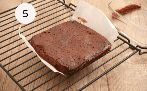5.容器から取り出し、網やケーキクーラーに乗せて冷ます。生地が冷めたら食べやすい大きさに切り分ける。