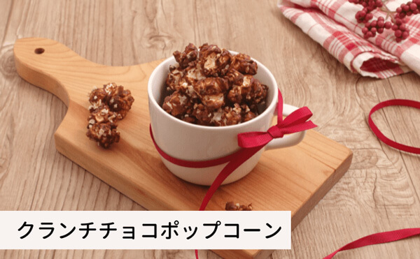 甘じょっぱさと、クランチのサクサクした食感がクセになるクランチチョコポップコーン。