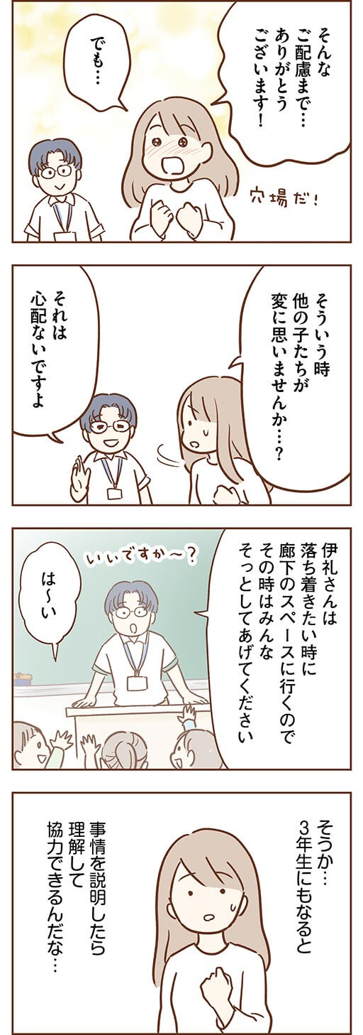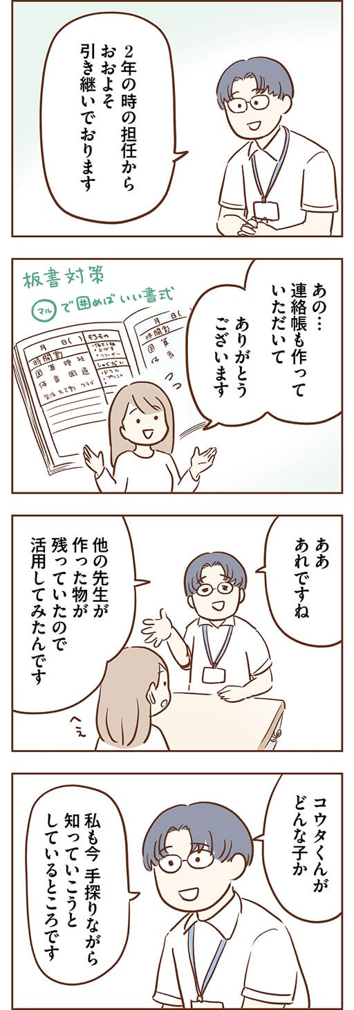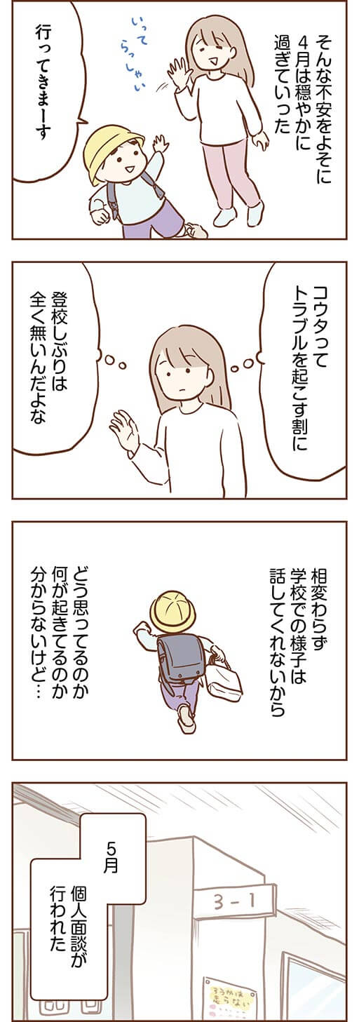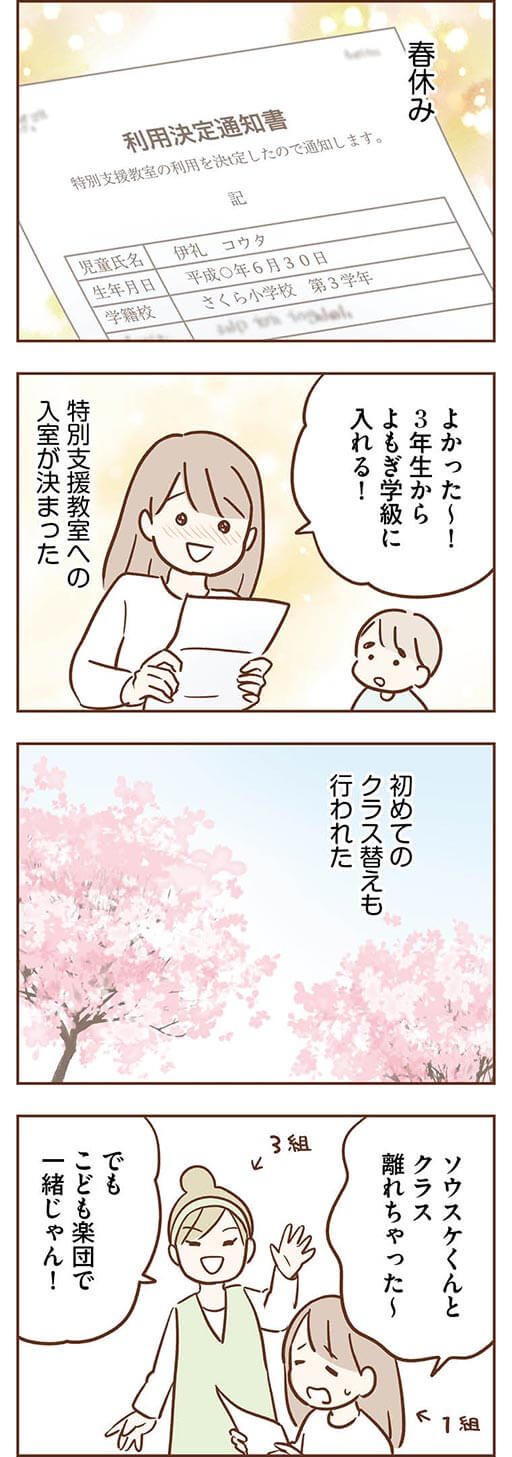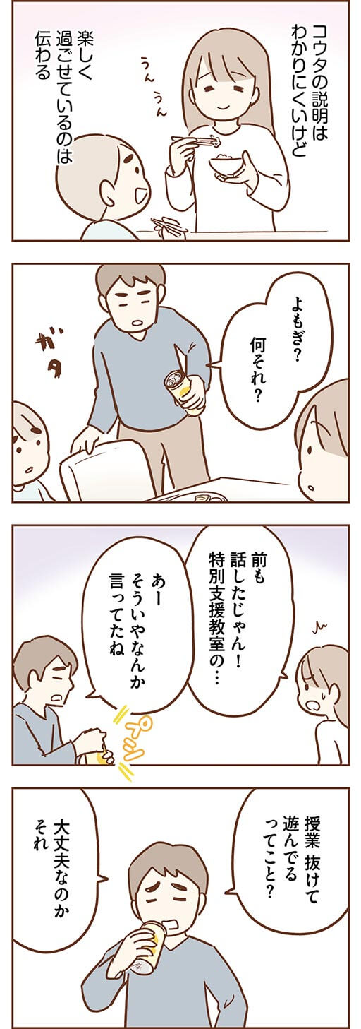 3年生から特別支援教室「よもぎ学級」に入れることになったコウタ。担任の先生の細やかな配慮もあり順調な新生活をスタート! ……と思いきや、思わぬ敵は家庭内にいたようで……。