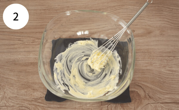 2. バターは常温に戻すか、200Wの電子レンジで40~50秒加熱して柔らかくする。泡だて器でよく混ぜてクリーム状にする。