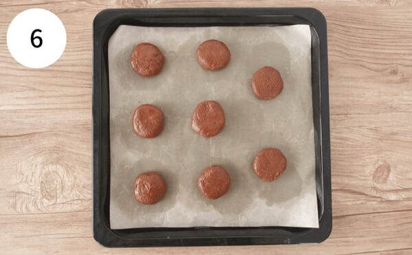 6. 生地を8つに分け、クッキングシートを敷いた天板にのせる。