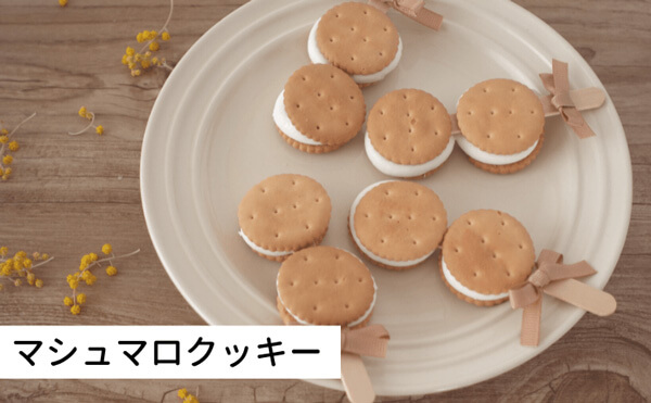 次にご紹介するのは、火を使わずに電子レンジだけで作れる「マシュマロクッキー」。