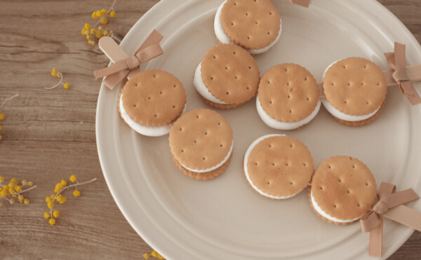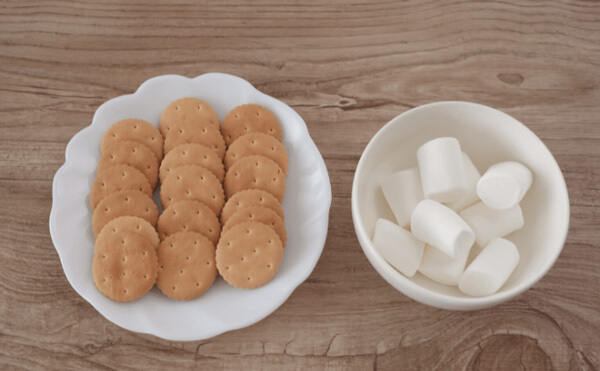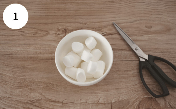 1. クッキーの大きさに合わせてマシュマロを切る。大きいクッキーの場合は切らずにそのまま使用する。