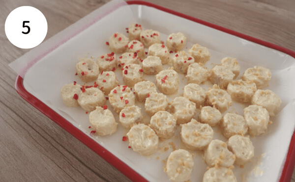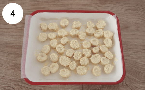 4. クッキングシートの上に広げ、間隔をあけて並べる。