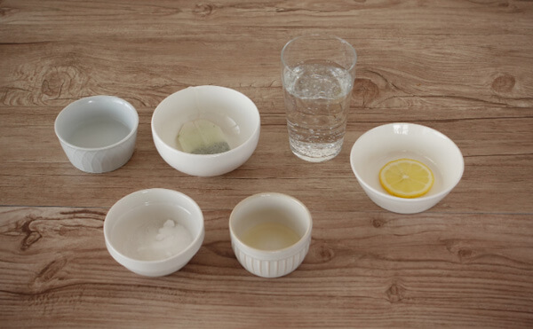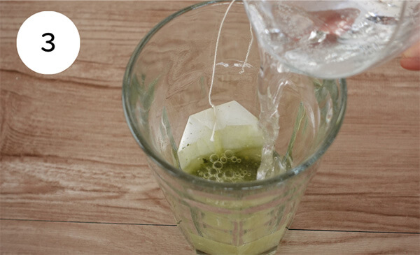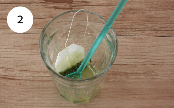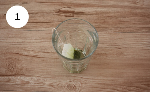 1. 耐熱容器に緑茶ティーバッグを入れ、熱湯をそそぎ、2分ほど蒸らす。