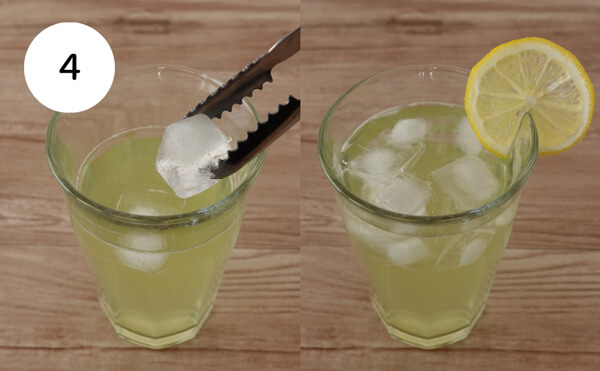 4. お好みで氷を入れ、全体をなじませるように優しく混ぜて、レモンを添えて完成です。