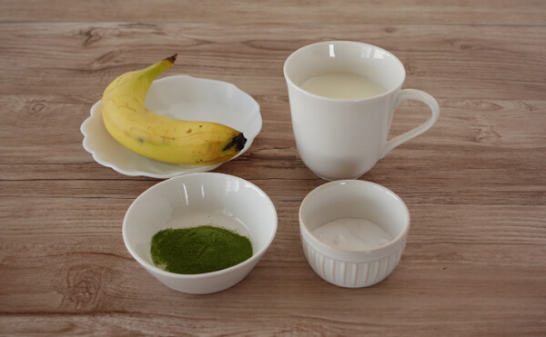 今回は、牛乳とバナナを加え、抹茶のほろ苦さを軽減し飲みやすくアレンジしました。