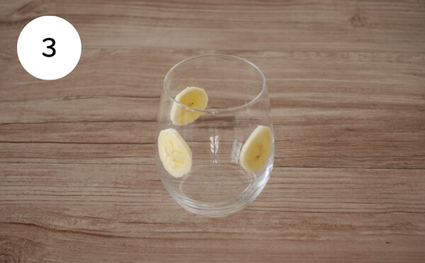 3. グラスの側面に1でスライスしたバナナを貼り付ける。