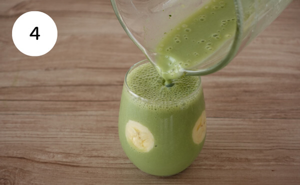 4. 2でかくはんしたスムージーをグラスにそそいで完成です。