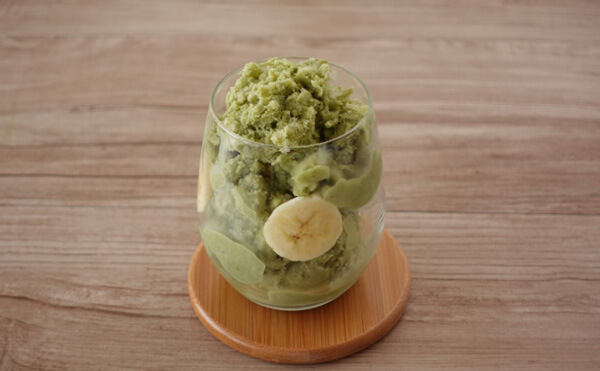 4. 全体がシャーベット状に固まったら、バナナ抹茶シェイクの完成です。
