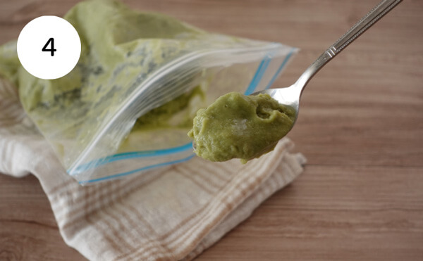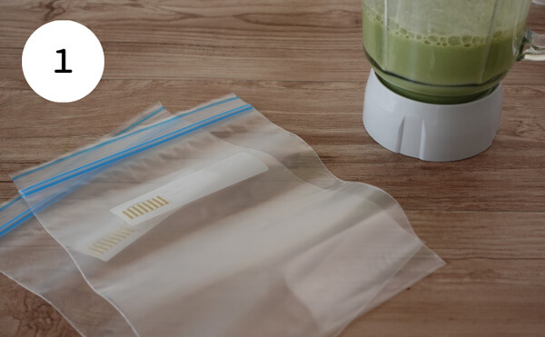 1. 抹茶バナナスムージーと同様にAの材料をミキサーでかくはんする。フリーザーバッグを2枚用意する。