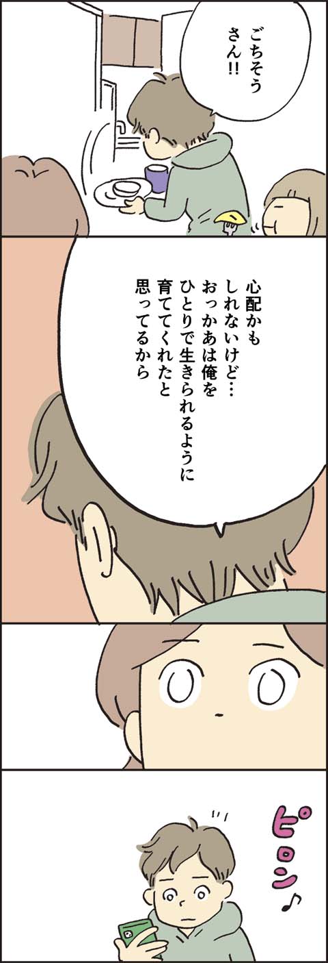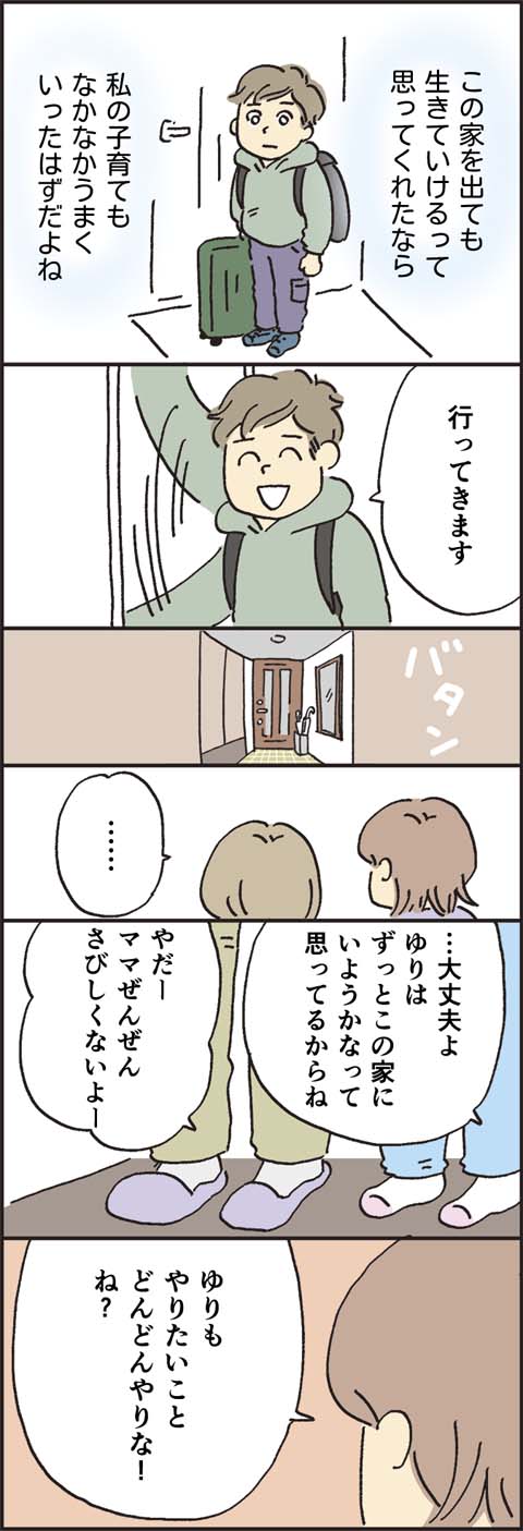 長男の言葉に胸が熱くなったり、まさかの彼女発覚に驚いたり、ひょうひょうとした夫の言葉に脱力したり、娘とはらはら涙を流してみたり……長男・太郎の旅立ちの日も、圭子の情緒はいつものように大忙しだったようです。「3人家族」となった一ノ瀬家。これからどんなドラマが待ち受けているのでしょうか?
