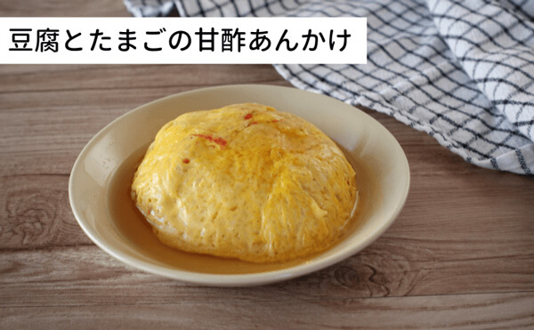 最初にご紹介するのは、豆腐とたまごを使った甘じょっぱい系レシピ。