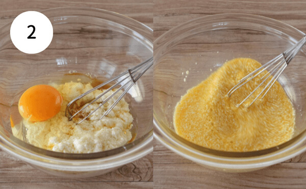 2. たまご、めんつゆを加え、よく混ぜる。