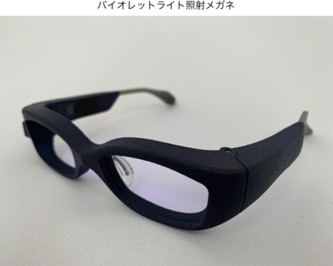 現在、坪田ラボにて開発中のバイオレットライト照射メガネ