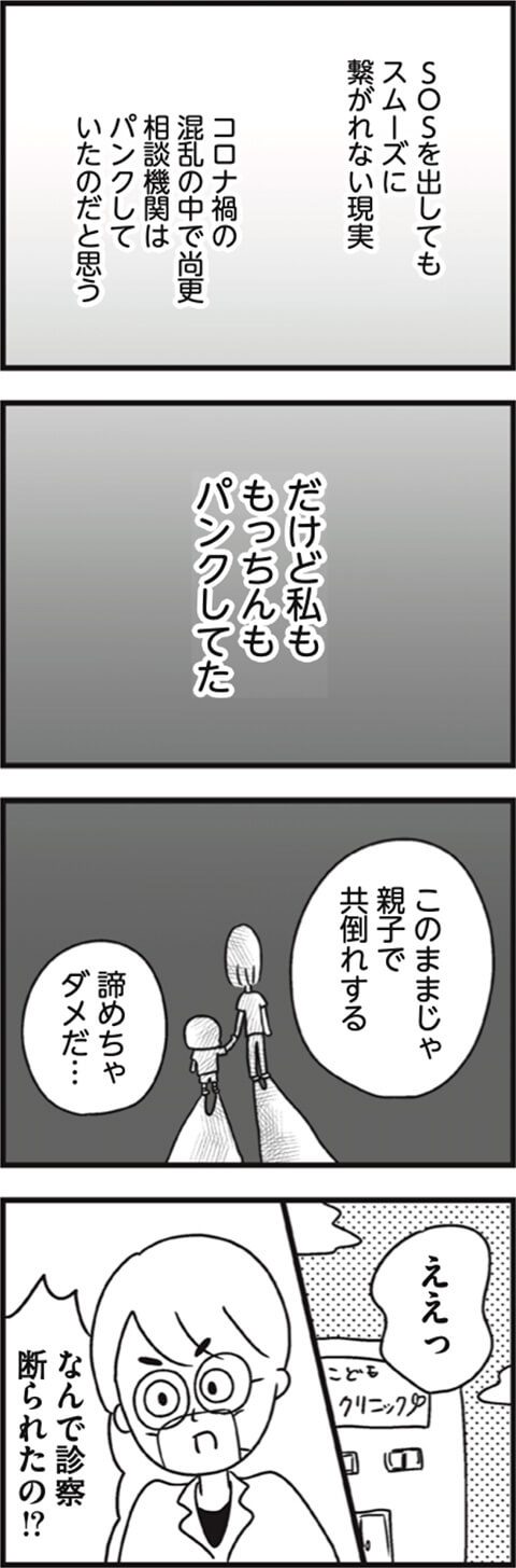 母子共に心がパンク寸前のなか、かかりつけ医が書いてくれた児童精神科への紹介状。「これで事態は好転していくはず」とホッと胸を撫で下ろしたのも束の間、思いもよらぬ現実が待っていたようで……。