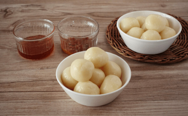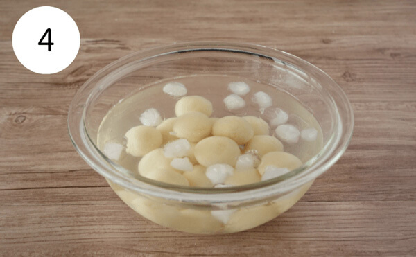 4. 団子を氷水で5分ほど冷やしたら、水を切って器に盛る。