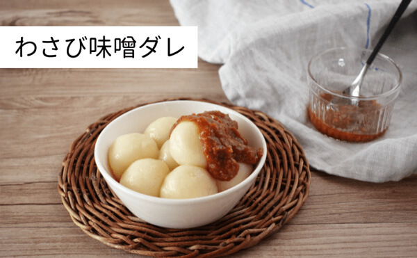 もう1つは、甘いものがニガテなお子さまにおすすめなピリ辛「ワサビ味噌ダレ」です。