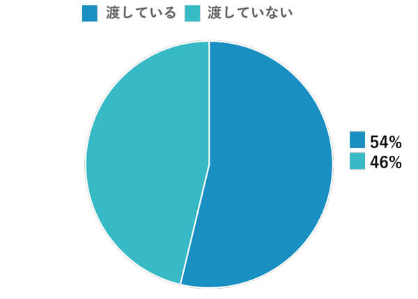 お子さまがお手伝いをした際に、お小遣いを渡している家庭は54%と、渡していない家庭46%を上回りました。(出典※1)