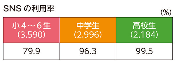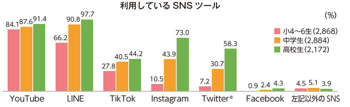 流行語の顔ぶれからも、小学生にとってSNSが身近なものになっていることが見えてきました。ではいったい、どのくらいSNSを利用し、どんなツールで楽しんでいるのでしょうか。