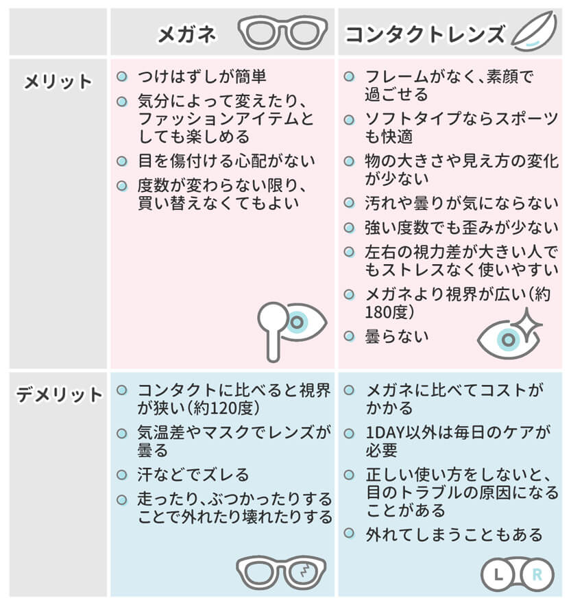 Q.メガネとコンタクトレンズのどちらがいい?メリット・デメリットって?