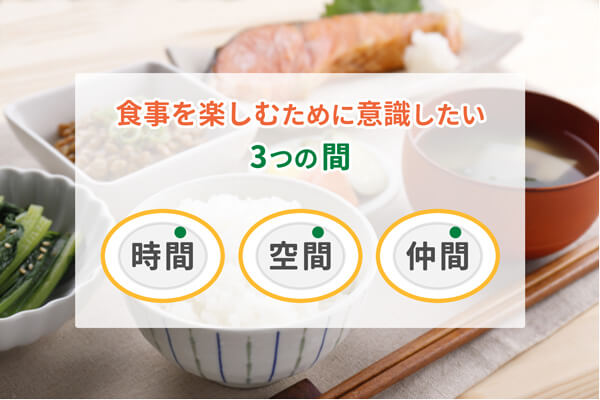 山口さん:「楽しい」の土台には、安心・安全があります。どんなにおいしい食事でも、時間に追い立てられたり、危険な場所で食べたり、恐怖心を覚える人と一緒であったりしては楽しめないですよね。そのため、まずは苦痛があれば取り除いてあげることが大切です。次の「3つの間」を意識して、安全な環境・関係性をつくってください。