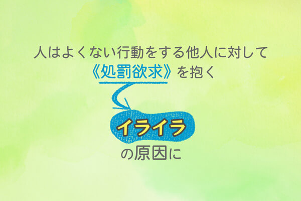 「近年の研究から、人はよくない行動をする他人に対して《処罰欲求》(相手を罰したいという欲求)を抱くものだとわかってきています。子育てにおいても、我が子が自分の期待と違う行動をした時、『子どもは間違っているから叱ろう』という処罰欲求をつい感じてしまうのだと思います。私自身も、このイライラにしばしば悩まされています」(村中先生)