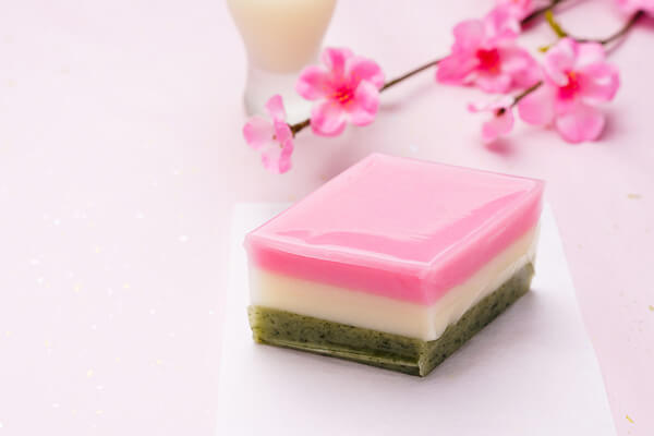 白酒は童謡「うれしいひなまつり」の歌詞にも登場するひな祭りの定番の白く濁ったお酒。厄災をはらうために飲む風習があります。白いお酒なので、桃の花の色とのコントラストもきれいですね。ただし、アルコールが入っているため、子どもが飲むことはNG。かわりに、白酒同様に白く、アルコールの入っていない甘酒が飲まれることが多いようです。
