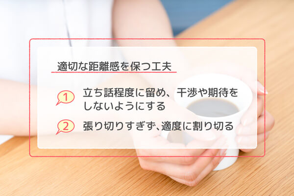 1.立ち話程度にとどめ、干渉や期待をしないようにする