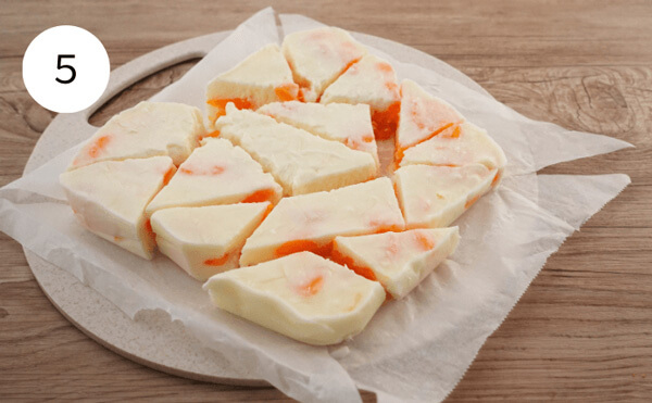 5. 生地が固まったら、包丁で食べやすい大きさに切り分けて完成です。