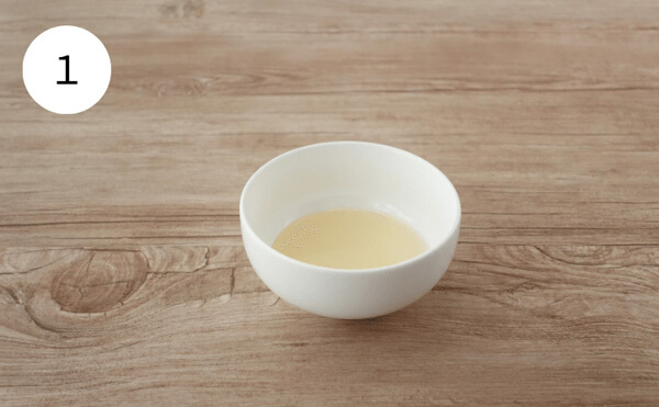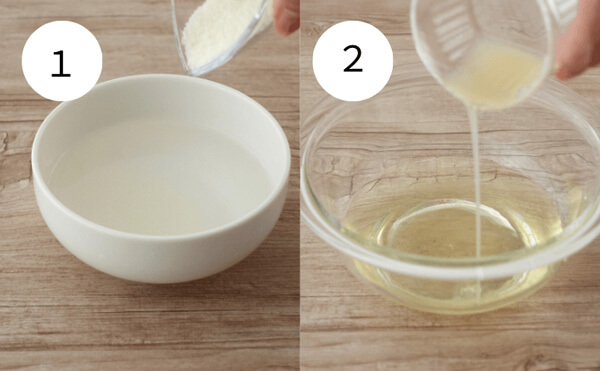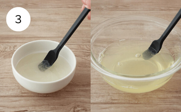 1. 水にゼラチンを振り入れてふやかす。600Wの電子レンジで40秒加熱する。