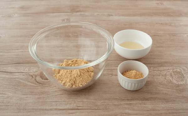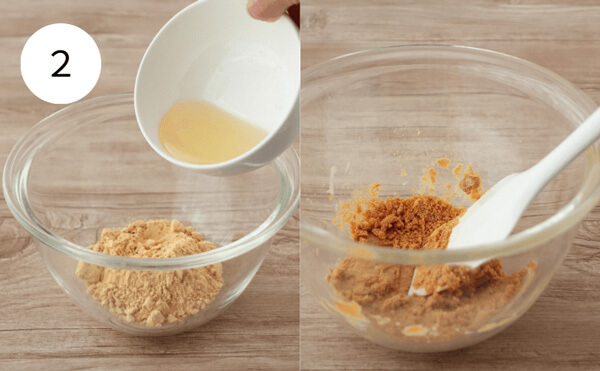 2. きな粉に1で加熱したはちみつを加え、一塊になるまでヘラなどですり混ぜる。